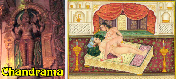 De legende wil dat op een zwoele zomernacht Hemvati, de dochter van een minister van de koning van Benaras, een erg jonge weduwe, in het meer aan het baden was toen de Maangod Chandrama haar zag en door haar schoonheid in verrukking werd gebracht. De zoon die uit hun samenzijn geboren werd was Chandravarman die later tot de dynastie Chandela uitgroeide. Ter ere van zijn moeder, bouwde hij tempels die de twee-eenheid van Purush en Prakriti, de mens en natuur, als bron van al leven en bestaan, vierden. |